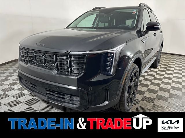 $750 off MSRP! 2026 Ebony Black Kia Sorento X-Line EX AWD 8 Speed Dual Clutch 2.5L I4 DGI Turbocharged DOHC 16V LEV3-SULEV30 281hp AWD.