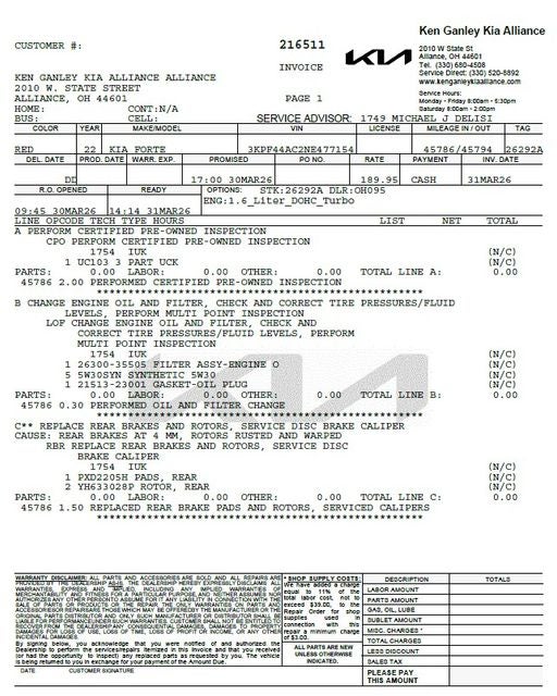 - Vehicle Name: Kia Forte