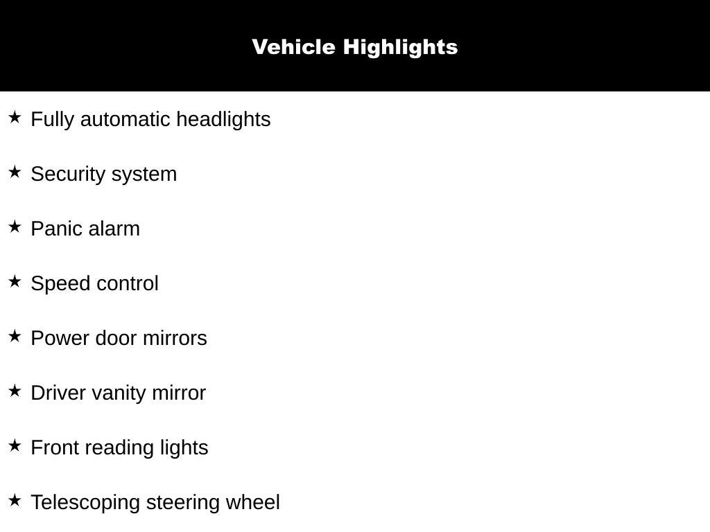 - Cruise Control w/Steering Wheel Controls