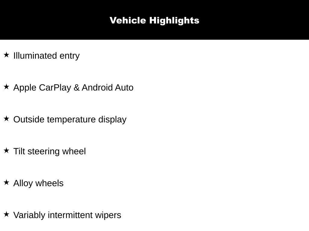 - Radio: 8" Display Audio -inc: 4 speakers, 8" touch screen, HD radio, wireless Apple CarPlay and Android Auto, Bluetooth® hands-free and USB input