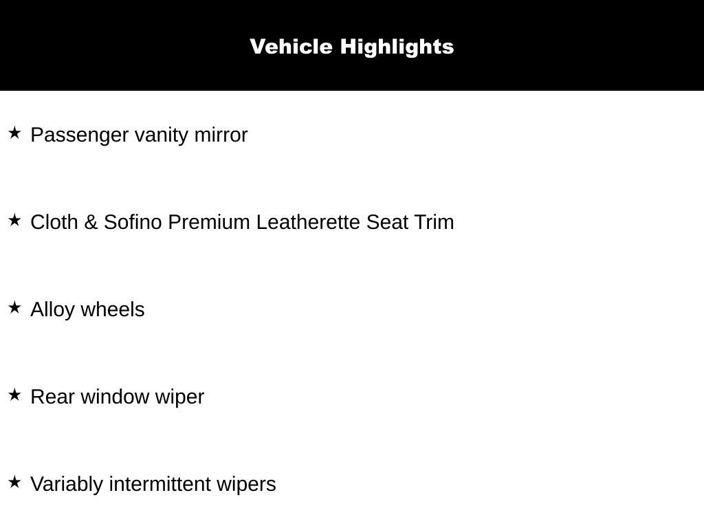 - Front Bucket Seats -inc: 6-way manually adjustable driver seat and 4-way manually adjustable front passenger seat