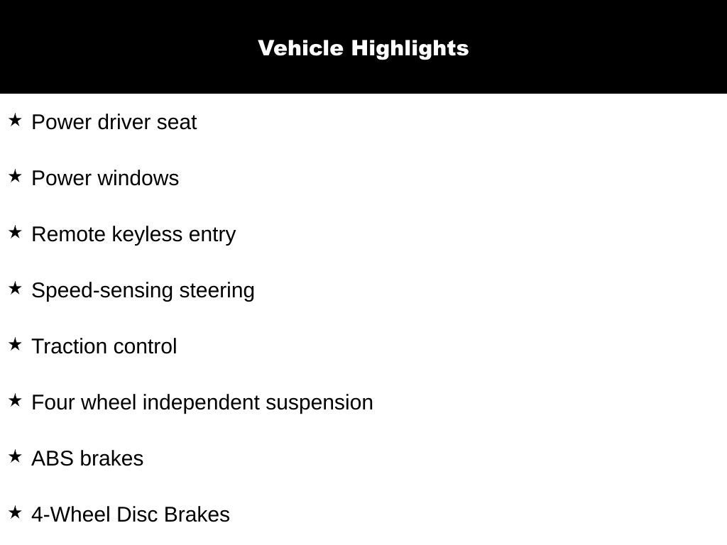 - Heated Front Bucket Seats -inc: 10-way power adjustable driver seat w/power lumbar support and 4-way manual adjustable passenger seat