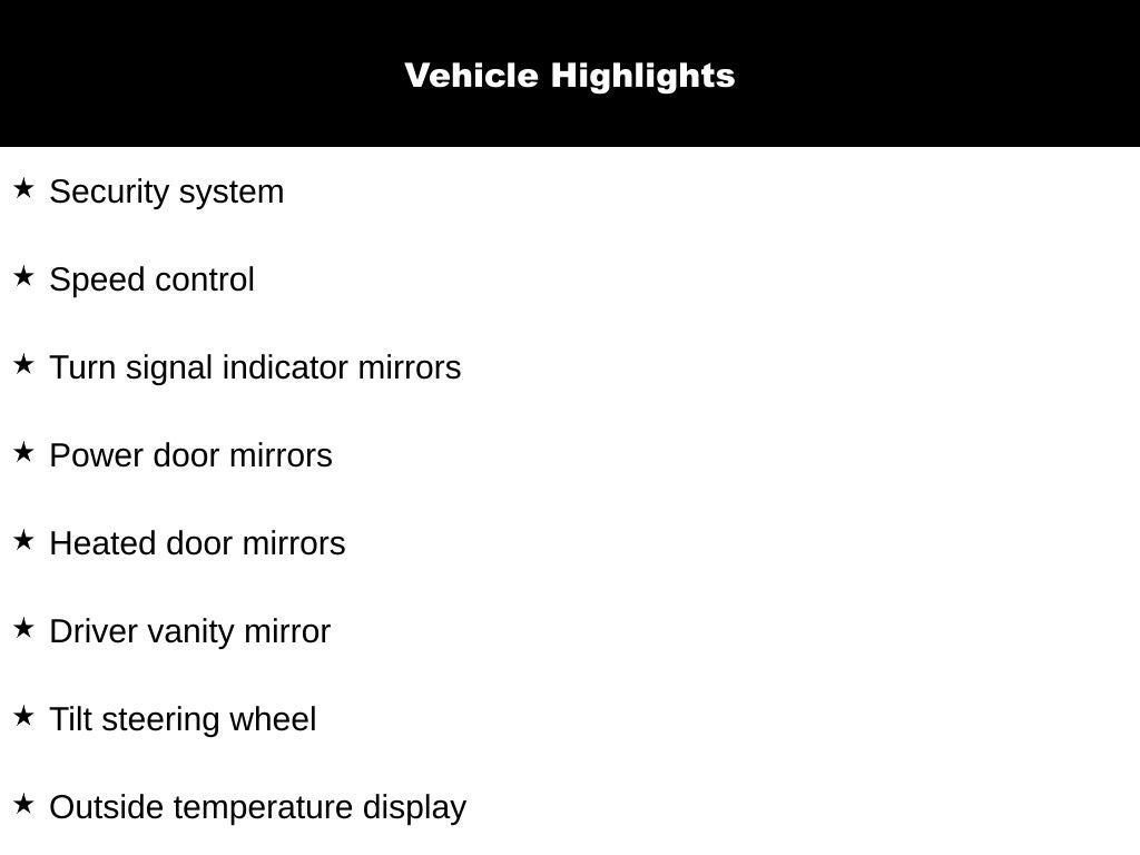 - Body-Colored Power Heated Side Mirrors w/Manual Folding and Turn Signal Indicator