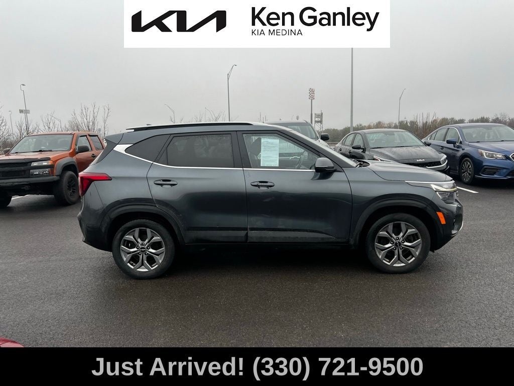 2024 Gravity Gray Kia Seltos S CARFAX One-Owner. Alloy Wheels, Recent Oil Change, Fully Detailed, Passed Dealer Inspection, 4-Wheel Disc Brakes, 6 Speakers, ABS brakes, Air Conditioning, Alloy wheels, Apple CarPlay & Android Auto, Auto High-beam Headlights, Brake assist, Delay-off headlights, Dual front impact airbags, Dual front side impact airbags, Electronic Stability Control, Exterior Parking Camera Rear, Four wheel independent suspension, Front fog lights, Fully automatic headlights, Heated door mirrors, Heated Front Bucket Seats, Heated front seats, Illuminated entry, Navigation System, Outside temperature ..display, Panic alarm, Power door mirrors, Power steering, Power windows, Radio: AM/FM/HD/Satellite Display System w/Navigation, Rear window defroster, Rear window wiper, Remote keyless entry, Security system, Speed-sensing steering, Steering wheel mounted audio controls, Telescoping steering wheel, Tilt steering wheel, Traction control, Turn signal indicator mirrors, Variably intermittent wipers. Certified. Kia Certified Pre-Owned Details: