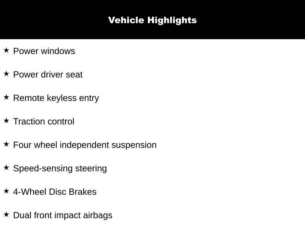 - Tailgate/Rear Door Lock Included w/Power Door Locks