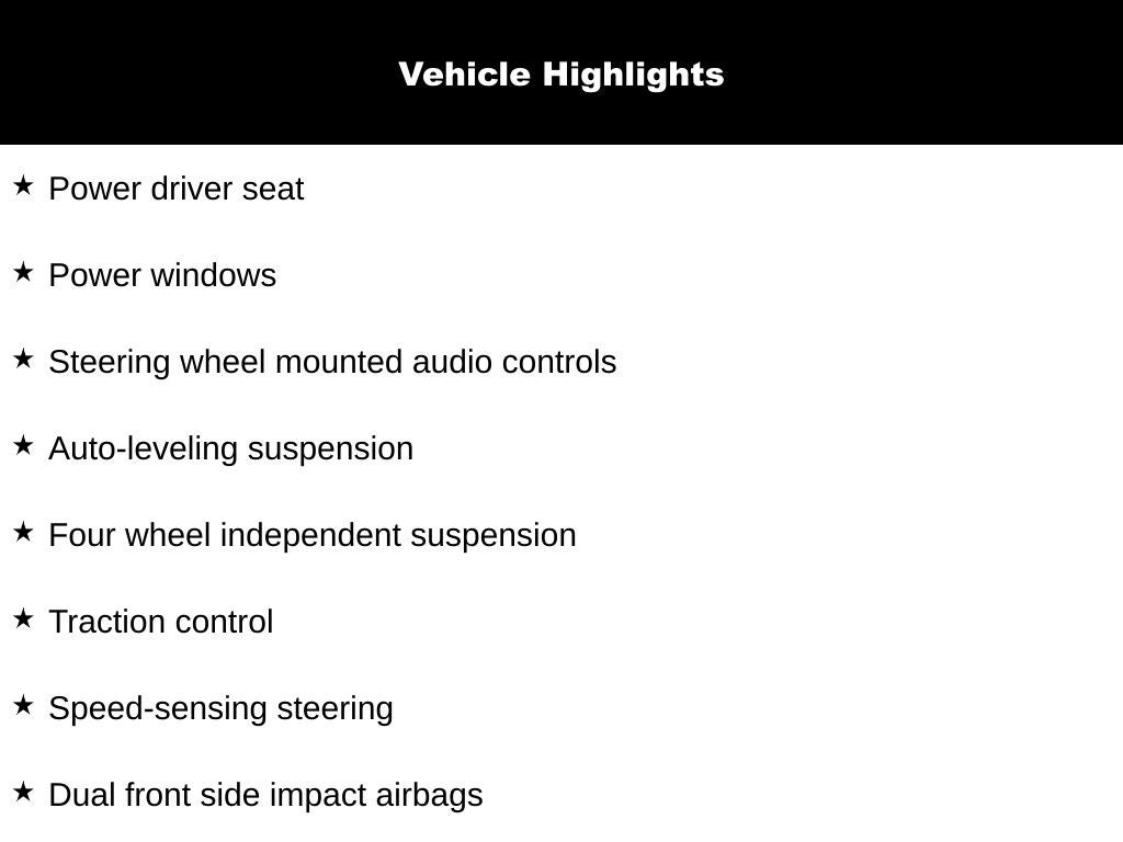 - Tailgate/Rear Door Lock Included w/Power Door Locks