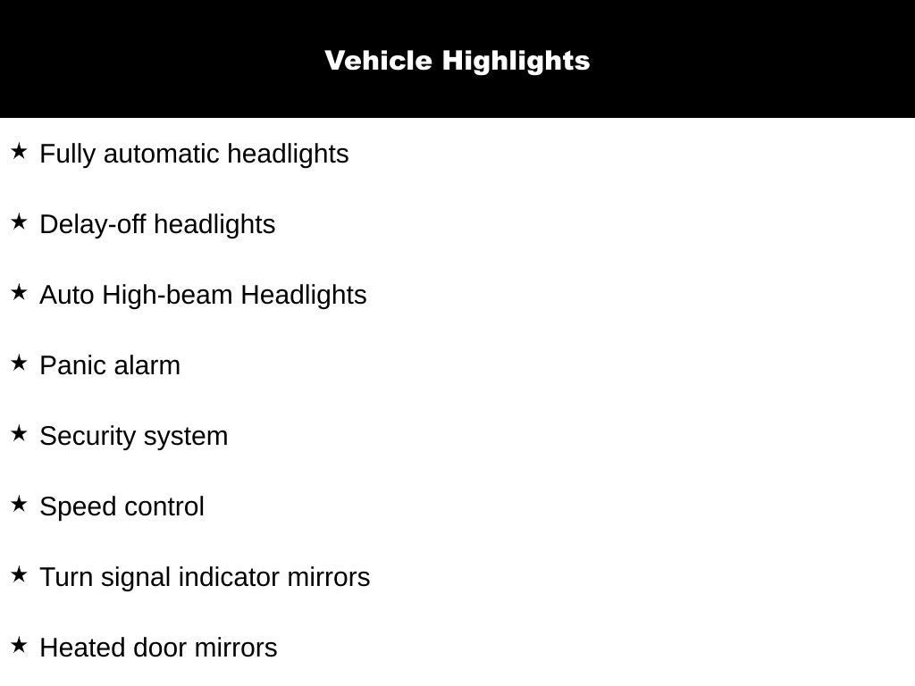 - Body-Colored Power Heated Side Mirrors w/Power Folding and Turn Signal Indicator