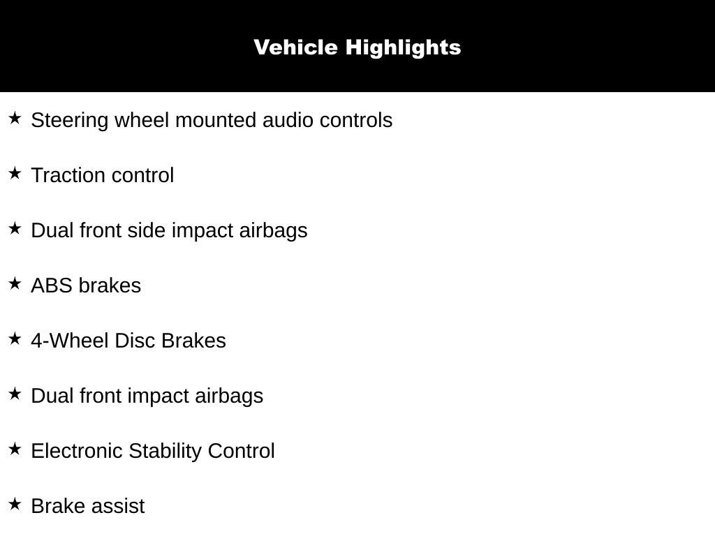 - 4-Wheel Disc Brakes w/4-Wheel ABS, Front Vented Discs, Brake Assist, Hill Hold Control and Electric Parking Brake