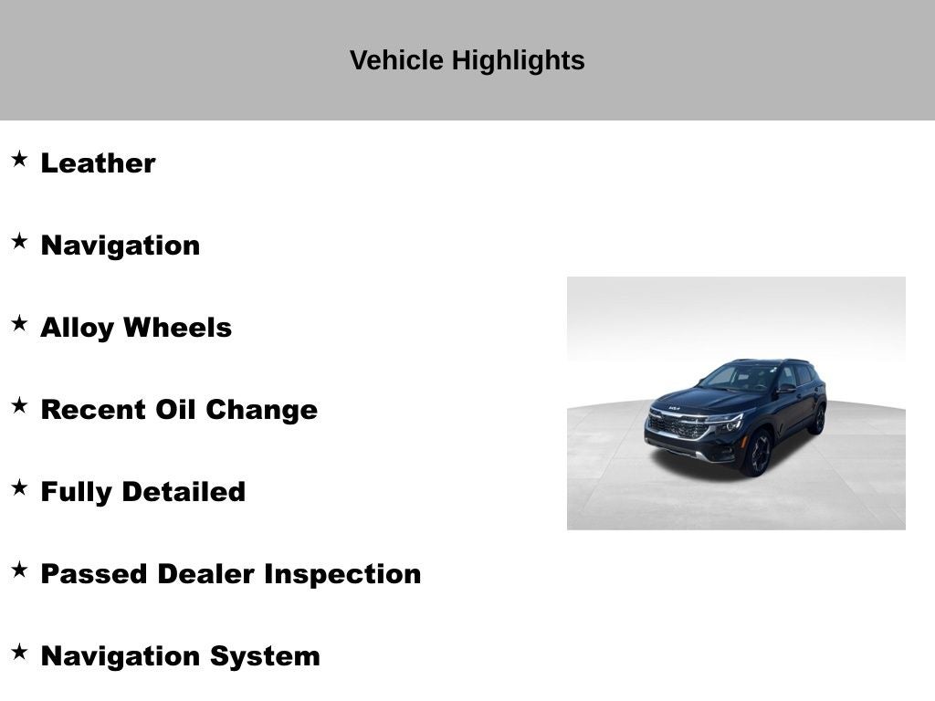 2025 Fusion Black Kia Seltos EX Clean CARFAX. Leather, Navigation, Alloy Wheels, Recent Oil Change, Fully Detailed, Passed Dealer Inspection, 4-Wheel Disc Brakes, 6 Speakers, ABS brakes, Air Conditioning, Alloy wheels, Apple CarPlay & Android Auto, Artificial Leather Seat Trim, Auto High-beam Headlights, Automatic temperature control, Brake assist, Delay-off headlights, Dual front impact airbags, Dual front side impact airbags, ..Electronic Stability Control, EX Sunroof Package, Exterior Parking Camera Rear, Four wheel independent suspension, Front fog lights, Front reading lights, Fully automatic headlights, Heated door mirrors, Heated Front Bucket Seats (3-Steps), Heated front seats, Illuminated entry, Navigation System, Outside temperature display, Panic alarm, Power door mirrors, Power driver seat, Power Liftgate, Power steering, Power Sunroof, Power windows, Radio: AM/FM/HD/Satellite Display System w/Navigation, Rear window defroster, Rear window wiper, Remote keyless entry, Security system, Speed control, Speed-sensing steering, Steering wheel mounted audio controls, Telescoping steering wheel, Tilt steering wheel, Traction control, Turn signal indicator mirrors, Variably intermittent wipers. Certified. Kia Certified Pre-Owned Details:
