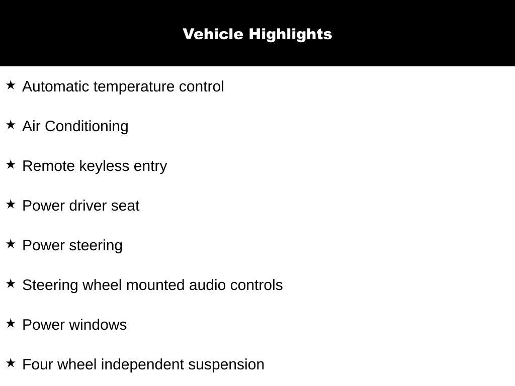 - Radio w/Seek-Scan, Clock, Speed Compensated Volume Control, Aux Audio Input Jack, Steering Wheel Controls and Radio Data System