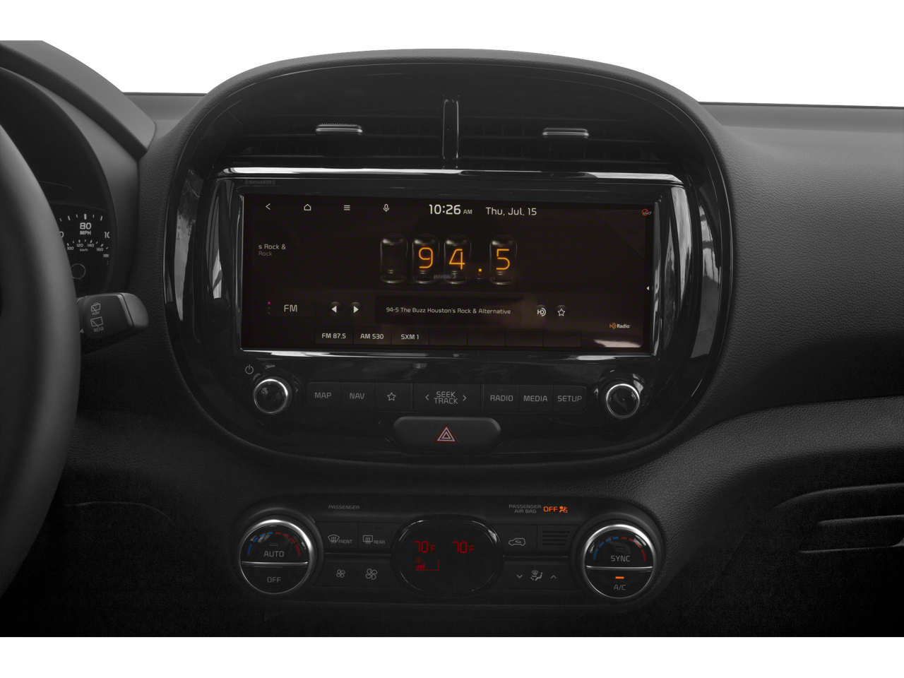 - Radio: AM/FM/MP3 Audio System -inc: UVO link, navigation, HD Radio, SiriusXM, 10.25" color touch screen, 6 speakers, support for Android Auto and Apple CarPlay, USB input, audio remote control, Bluetooth® hands-free w/voice recognition and black shark fine type antenna