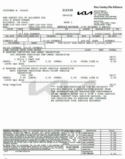 As a Kia Certified Pre-Owned vehicle, this 2025 Sorento S comes with a comprehensive warranty and a range of additional benefits: