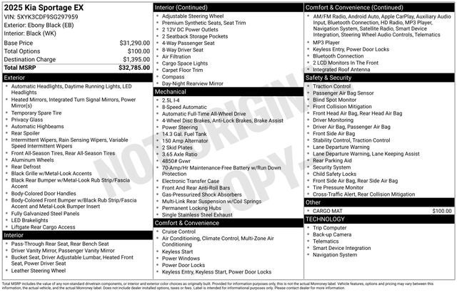 Discover the perfect balance of style, technology, and performance with this 2025 Kia Sportage EX. Schedule a test drive today and experience the difference for yourself. We're confident you'll be impressed by this exceptional vehicle and the unparalleled value it offers.