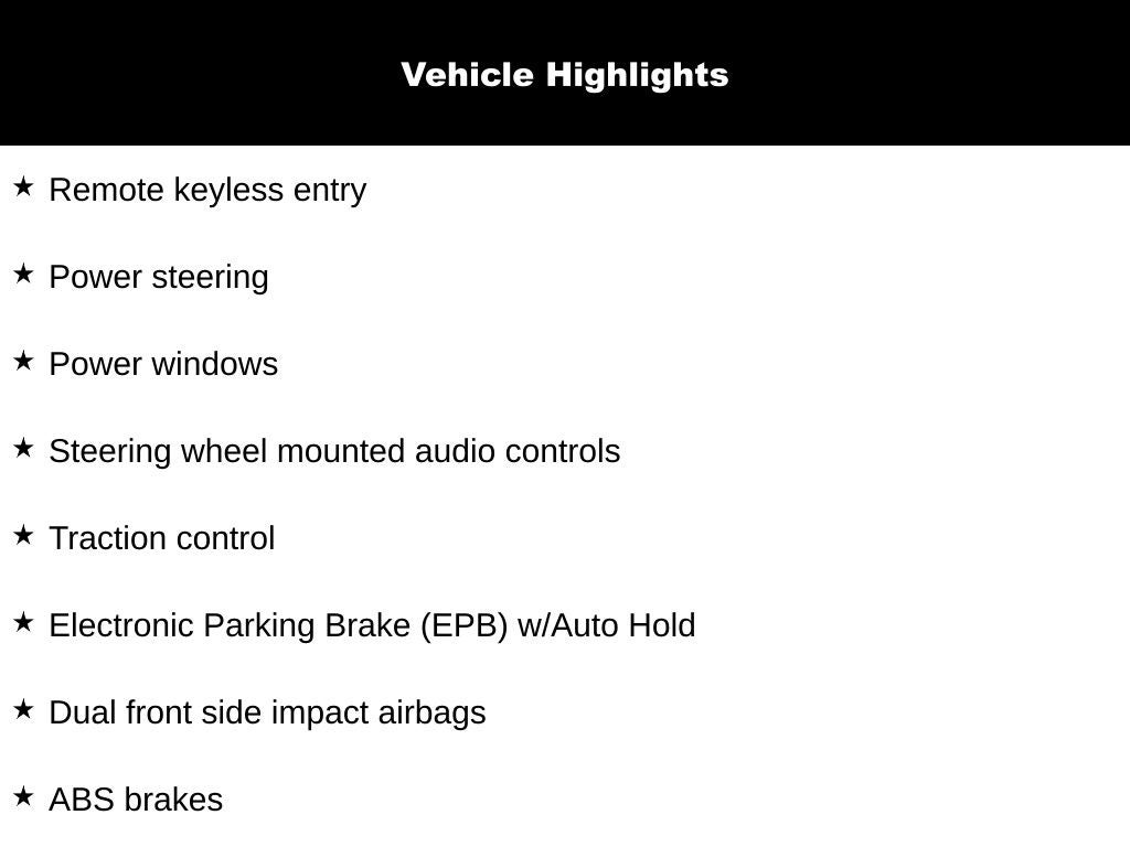 - 4-Wheel Disc Brakes w/4-Wheel ABS, Front Vented Discs, Brake Assist and Hill Hold Control
