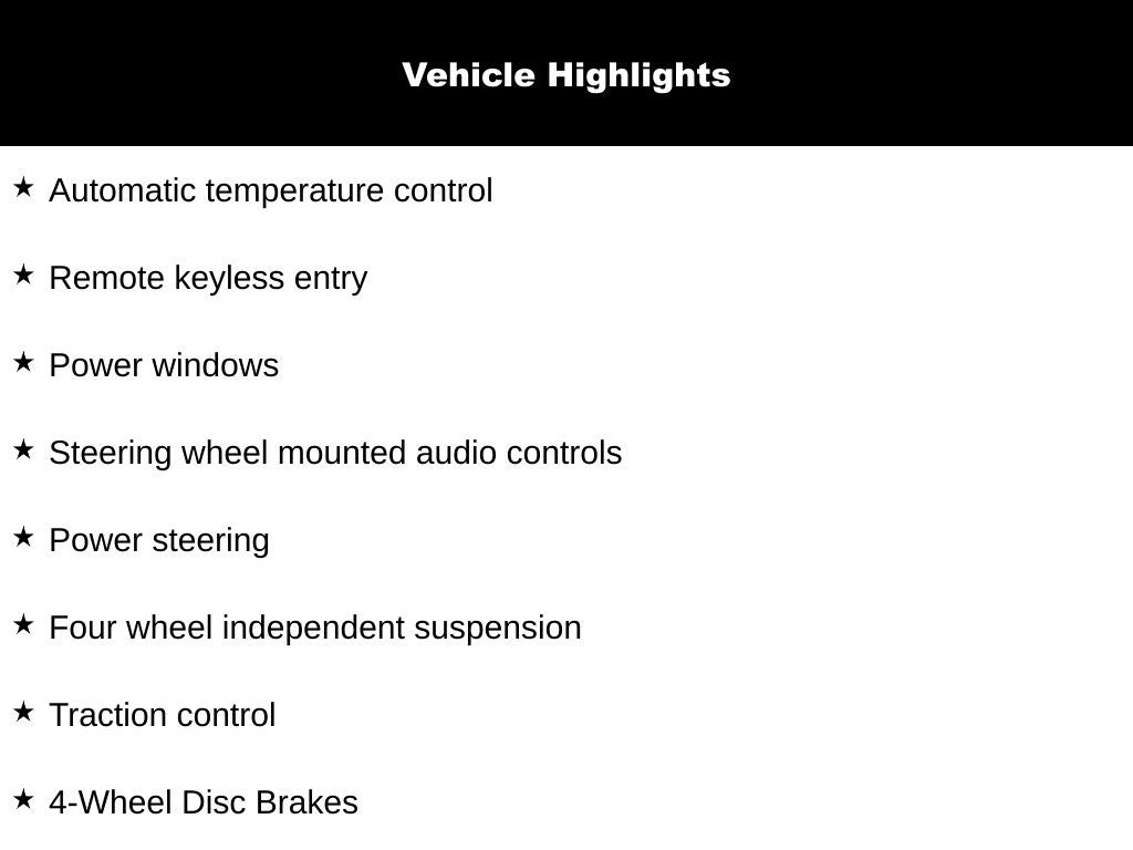 - 4-Wheel Disc Brakes w/4-Wheel ABS, Front Vented Discs, Brake Assist and Hill Hold Control