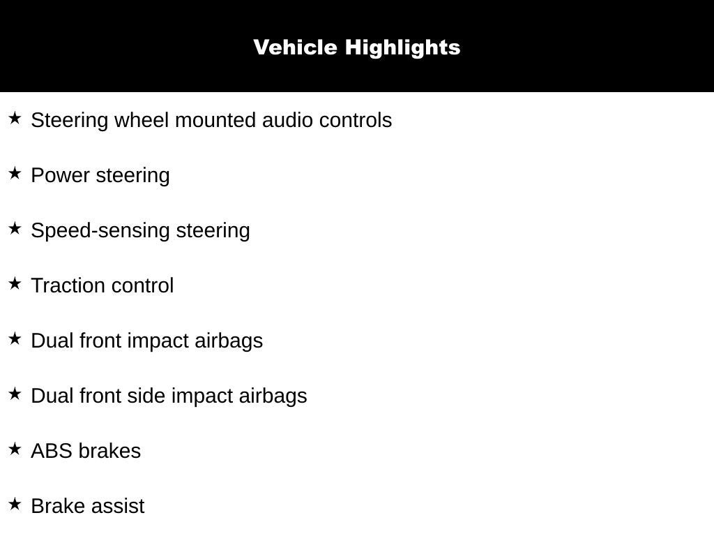 - Radio: AM/FM/MP3 Audio System -inc: 6 speakers, 8" display screen, steering wheel-mounted audio controls, USB input jack, Bluetooth® wireless technology and wireless Apple CarPlay/Android Auto