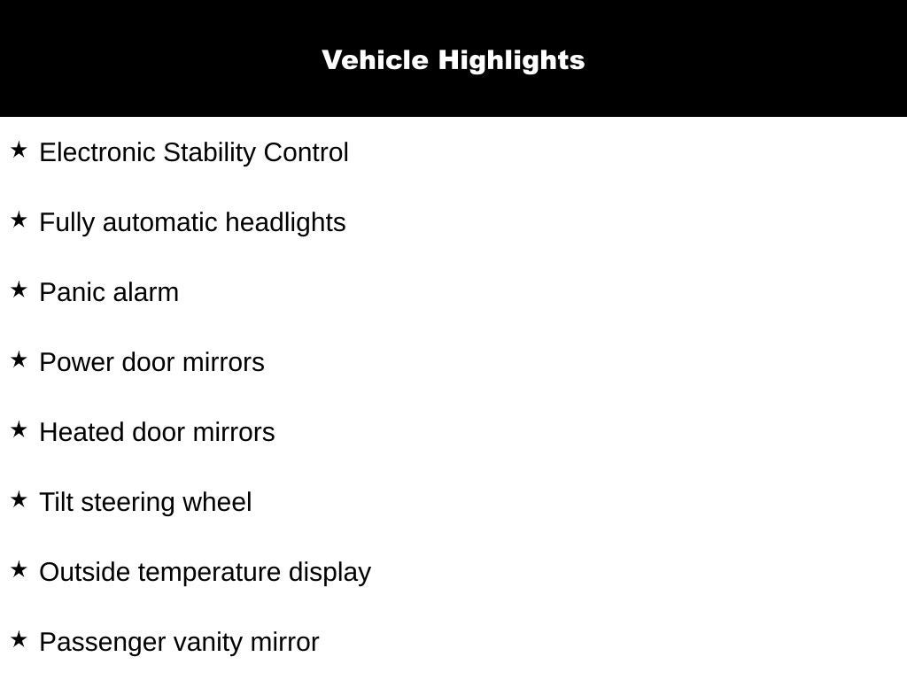 - Driver And Passenger Visor Vanity Mirrors w/Driver And Passenger Auxiliary Mirror