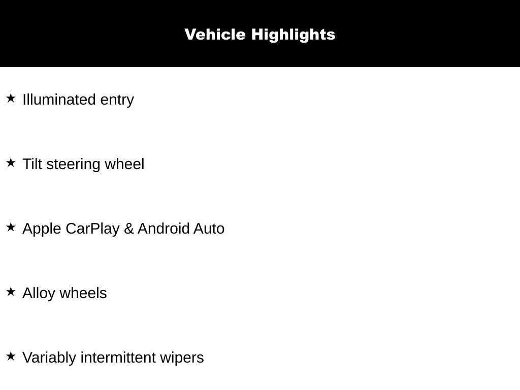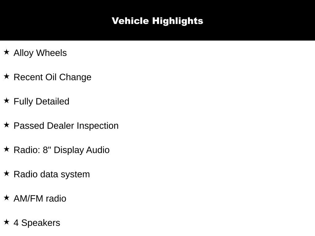 - Radio: 8" Display Audio -inc: 4 speakers, 8" touch screen, HD radio, wireless Apple CarPlay and Android Auto, Bluetooth® hands-free and USB input