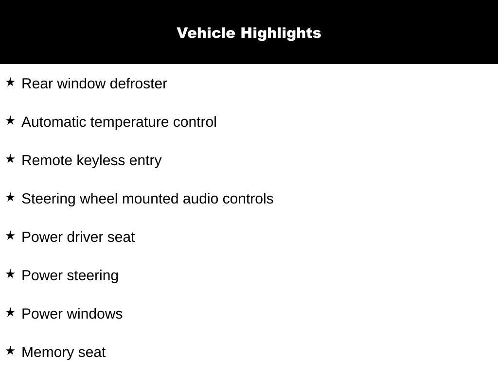 - Tailgate/Rear Door Lock Included w/Power Door Locks