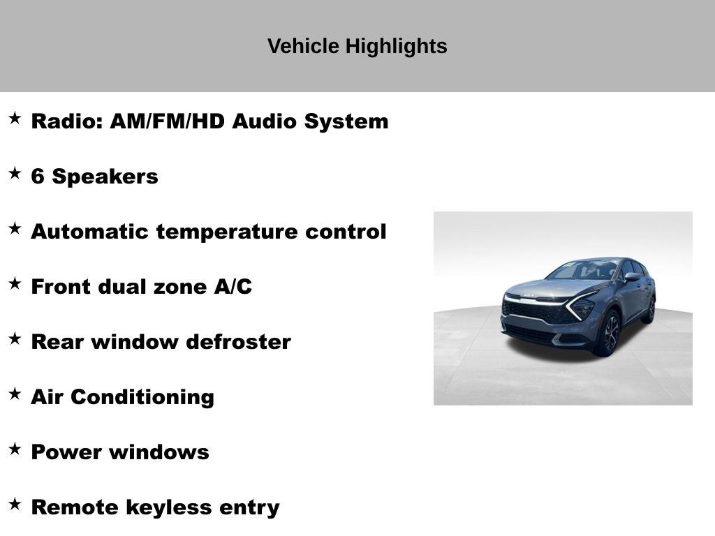 2024 Everlasting Silver Kia Sportage EX New Price! CARFAX One-Owner. Clean CARFAX. Leather, Navigation, New Tires, Alloy Wheels, Recent Oil Change, Fully Detailed, Passed Dealer Inspection, 18 Machined Alloy Wheels, 4-Wheel Disc Brakes, 6 Speakers, ABS brakes, Air Conditioning, Apple CarPlay & Android Auto, Auto High-beam Headlights, Automatic temperature control, Brake assist, Compass, Delay-off headlights, Driver vanity mirror, Dual front impact airbags, Dual front side impact airbags, Electronic Stability Control, Four wheel independent suspension, Front dual zone A/C, Fully automatic headlights, Heated front seats, Illuminated entry, Leatherette Seat Trim, Navigation System, Outside temperature display, Power driver seat, Power steering, Power windows, Radio: AM/FM/HD Audio System, Rain sensing wipers, Rear window defroster, Rear window wiper, Remote keyless entry, Speed-sensing steering, Steering wheel mounted audio controls, Telescoping steering wheel, Tilt steering wheel, Traction control, Turn signal indicator mirrors, Variably intermittent wipers. Certified. Kia Certified Pre-Owned Details: