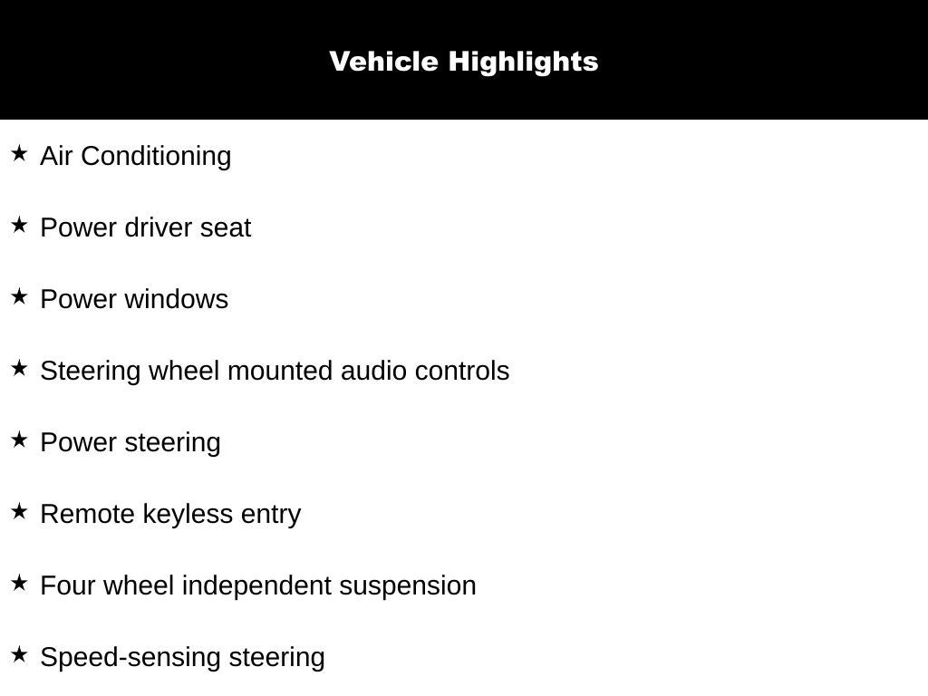 - Radio w/Seek-Scan, Clock, Speed Compensated Volume Control, Steering Wheel Controls and External Memory Control