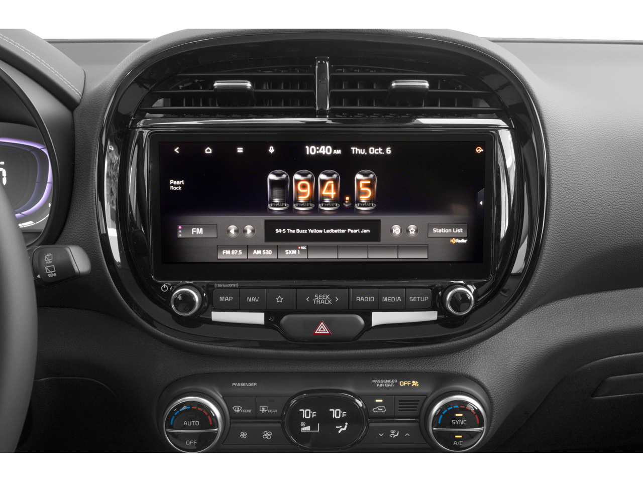 - Radio: AM/FM/MP3/HD Audio System -inc: UVO link, navigation, SiriusXM, 10.25" color touch screen, 6 speakers, Android Auto/Apple CarPlay, USB input, audio remote control, Bluetooth® wireless technology w/voice recognition and wireless charging